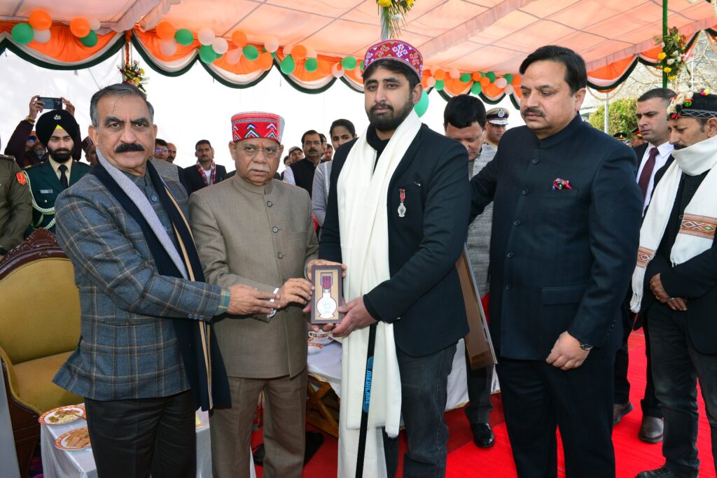इस अवसर पर राज्यपाल ने शिमला जिला की चौपाल तहसील के अंतर्गत चंबी डाकघर के गगाना गांव निवासी रितिक चौहान को जीवन रक्षा में असाधारण साहस दिखाने के लिए उत्तम जीवन रक्षा पदक से सम्मानित किया।